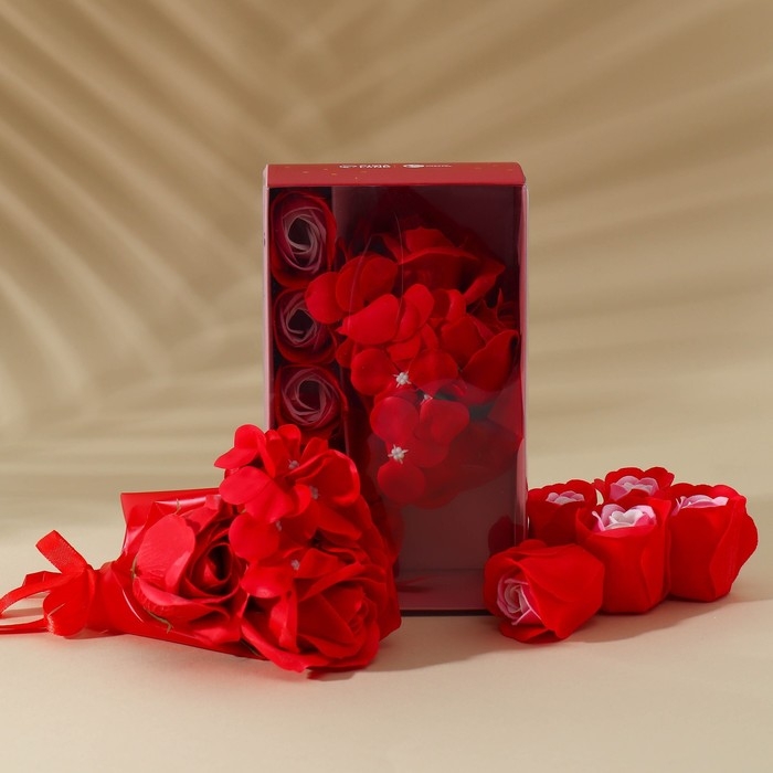 Мыльные цветы в подарочной упаковке украсит ваш интерьер и окутает помещение нежным изысканным ароматом. Мыльный цветок выглядит очень реалистично и имеет продолжительный срок годности. Набор прекрасно подойдет в качестве украшения интерьера, для создания композиций подарка
