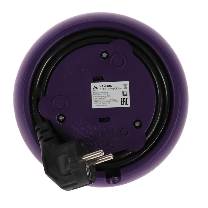 Чайник электрический Luazon LSK-1809, стекло, 1.8 л, 1500 Вт, подсветка, фиолетовый
