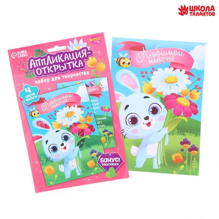 Набор для творчества. Аппликация фольгой «Зайчик с цветами»