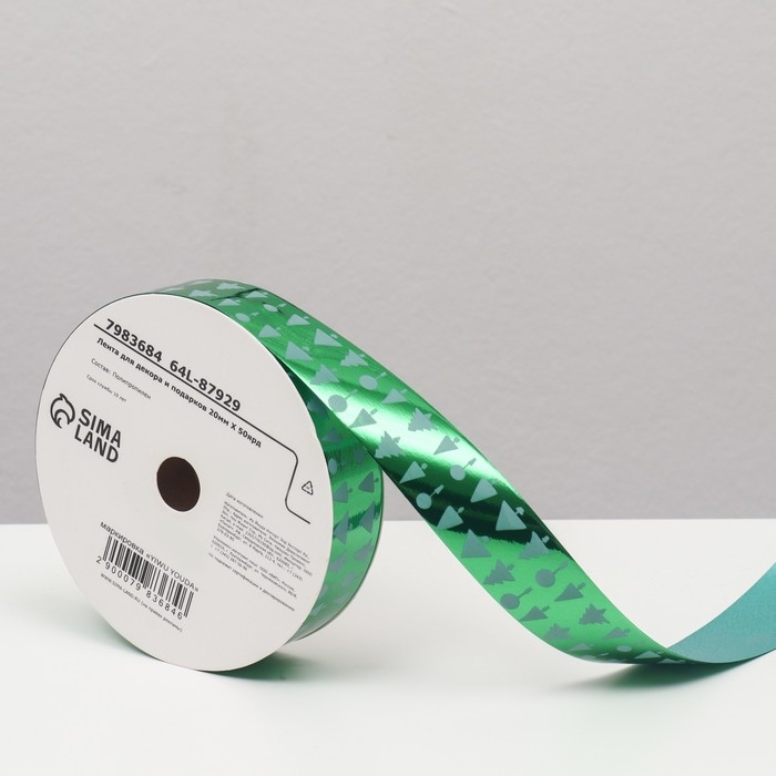 Новый год. Лента для декора и подарков, ёлки, 2 см х 45 м