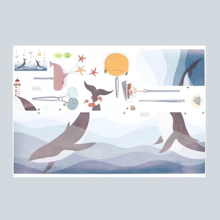Наклейка пластик интерьерная цветная "Игры китов" 60х85 см