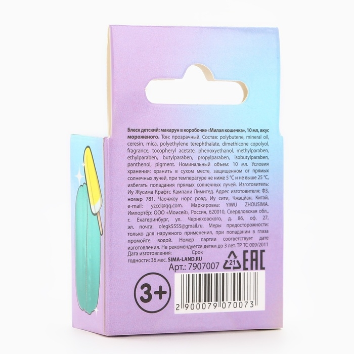 Блеск макарун в коробочке «Милая кошечка», 10 г, аромат мороженого