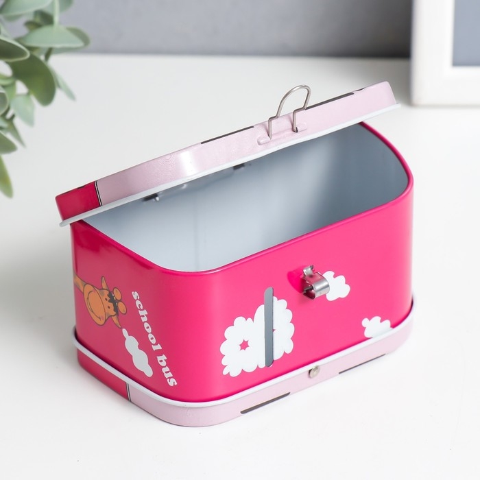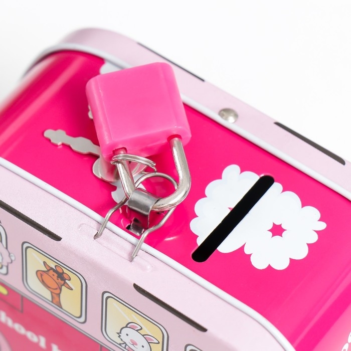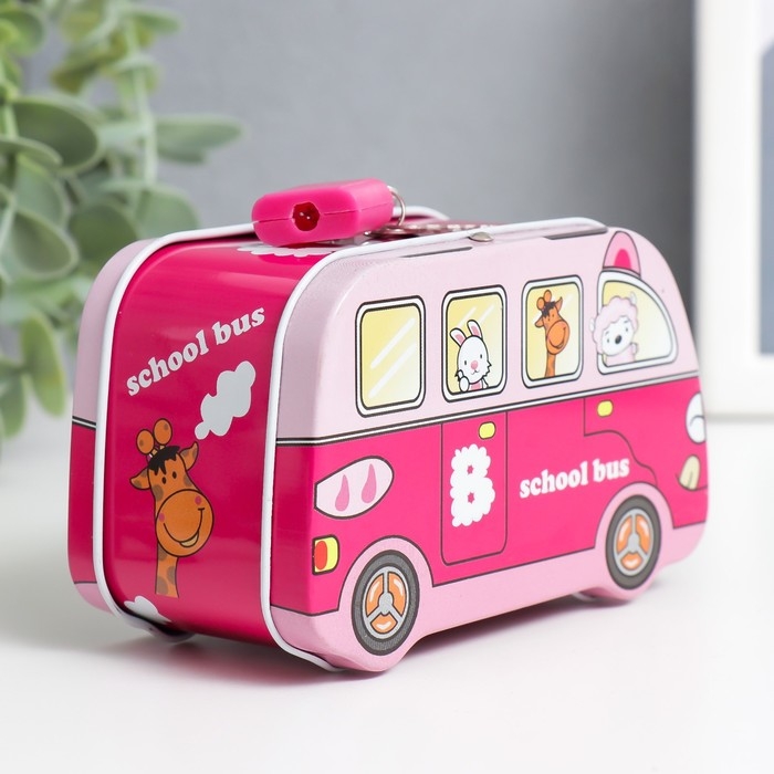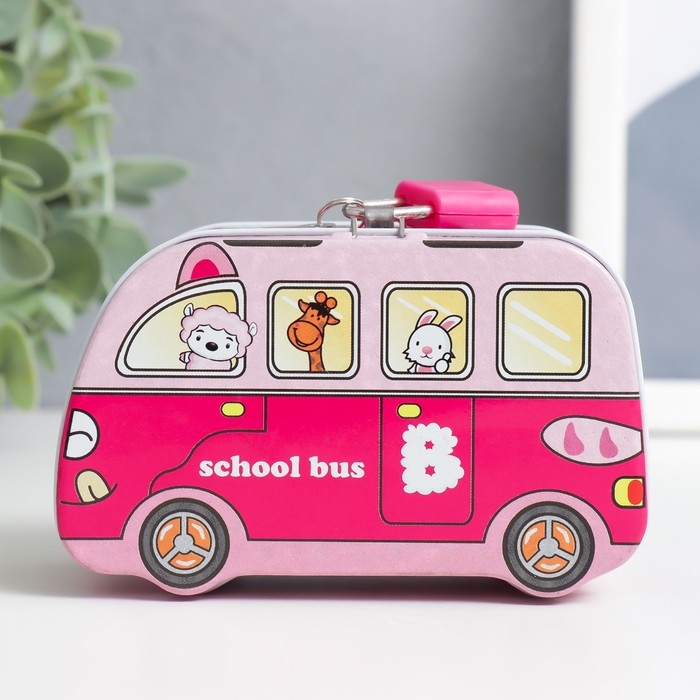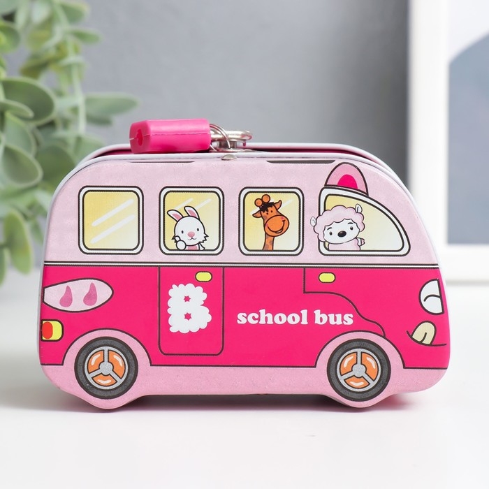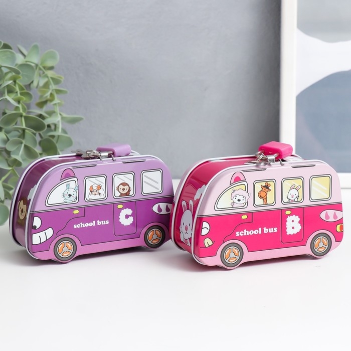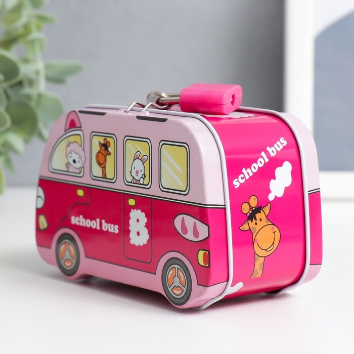 Копилка металл с замочком "Звери в автобусе" МИКС 11х5,5х6,7 см