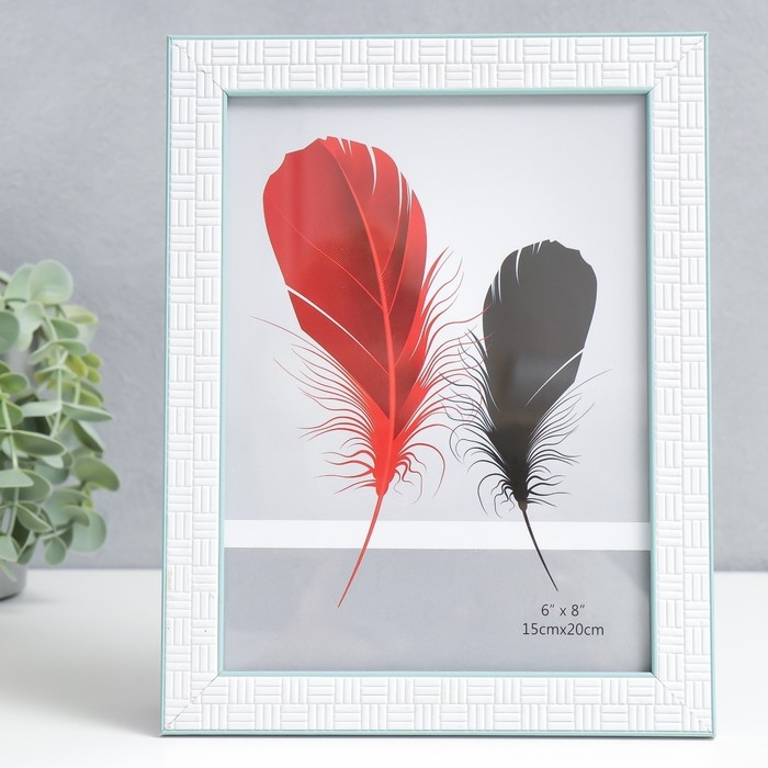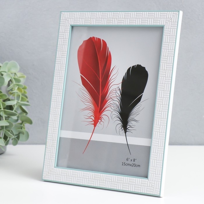 Фоторамка пластик 15х20 см "Белая брусчатка" бирюзовая двойная обводка 22,3х17,2 см