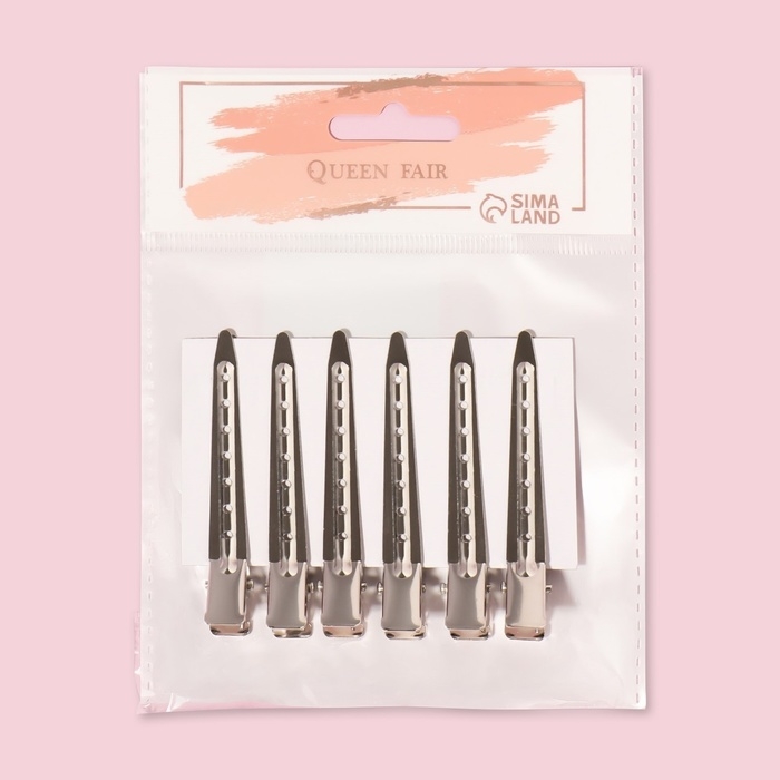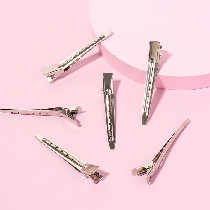 Зажимы для волос, набор - 6 шт, 7 см, цвет серебристый