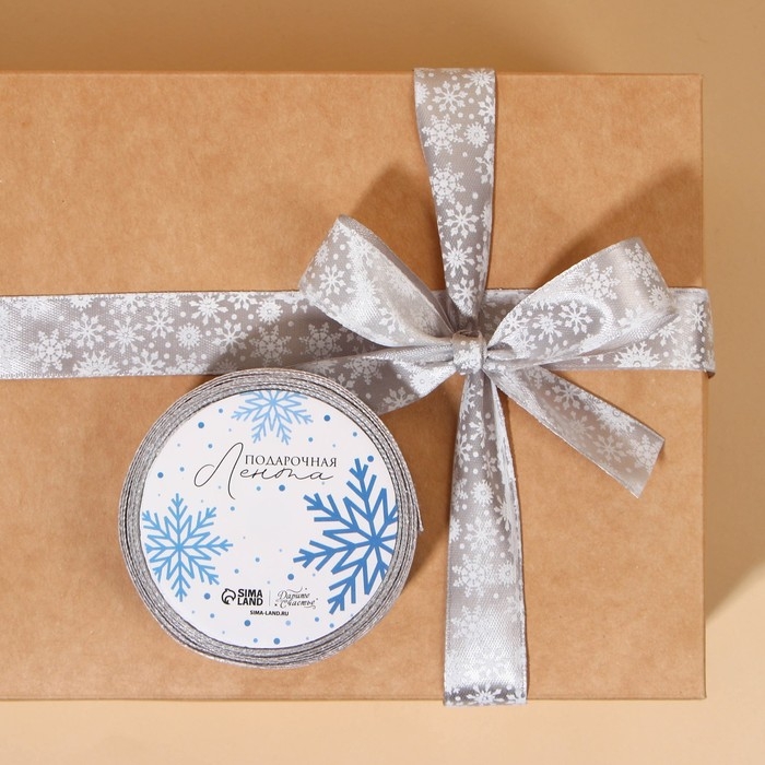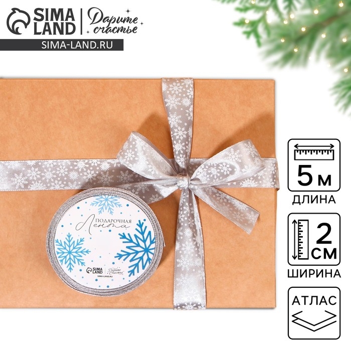Лента атласная «Белые снежинки», 2 см × 5 м