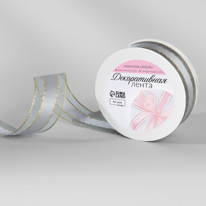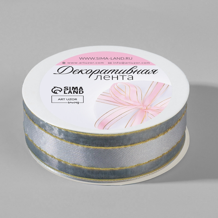 Лента декоративная, капроновая/атласная, с люрексом, 25 мм, 18 ± 1 м, цвет серый