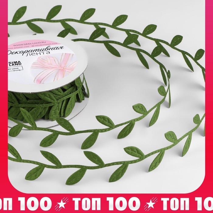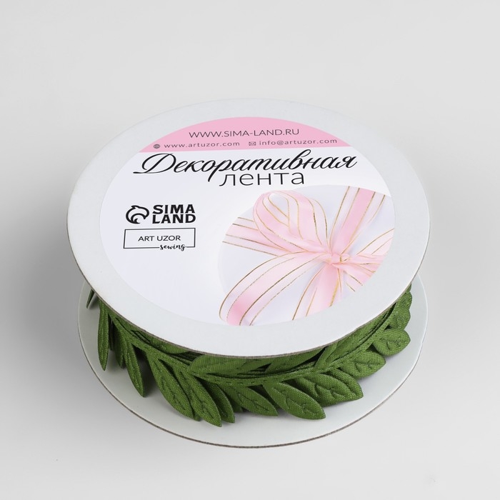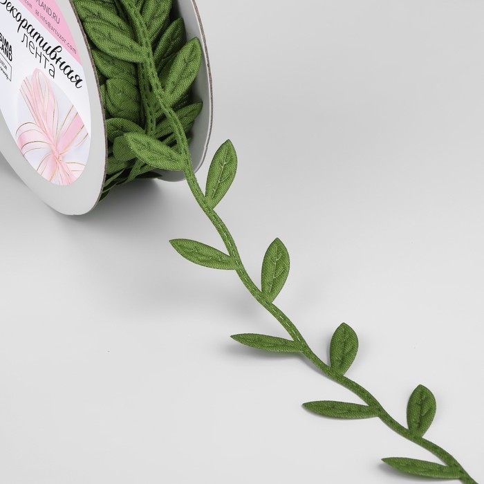 Лента фигурная «Листья», 25 мм, 9 ± 0,5 м, цвет тёмно-зелёный