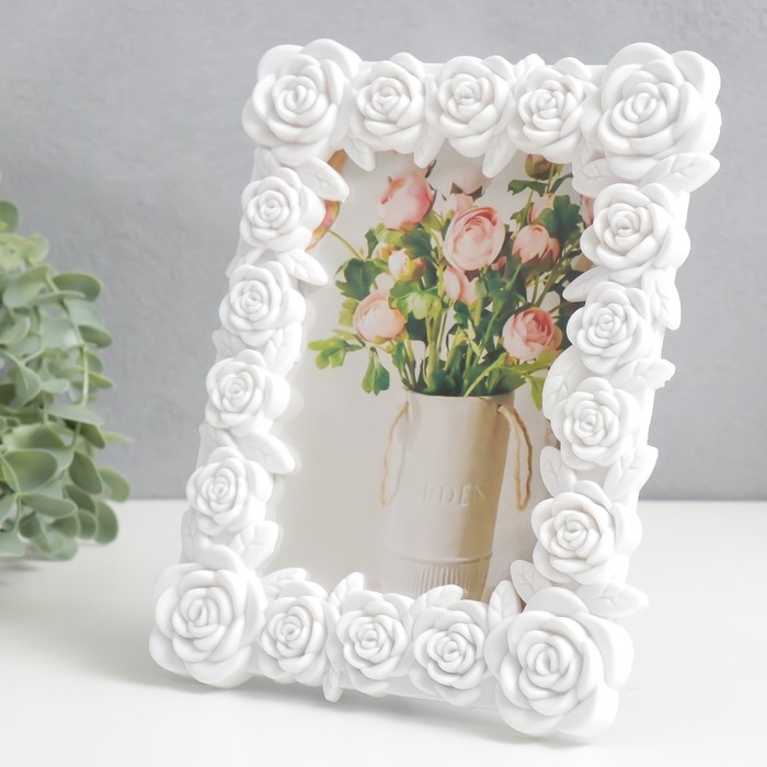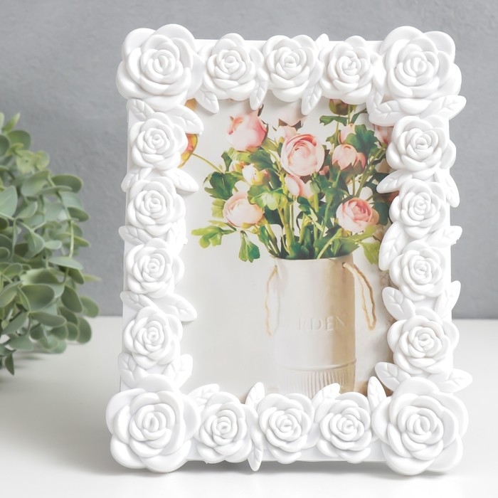 Фоторамка пластик 10х15 см "Розарий" белая 22х17 см