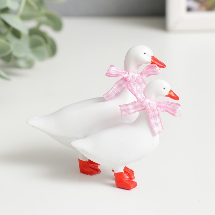 Сувенир полистоун "Белые уточки с бантиками" 8х8х5 см