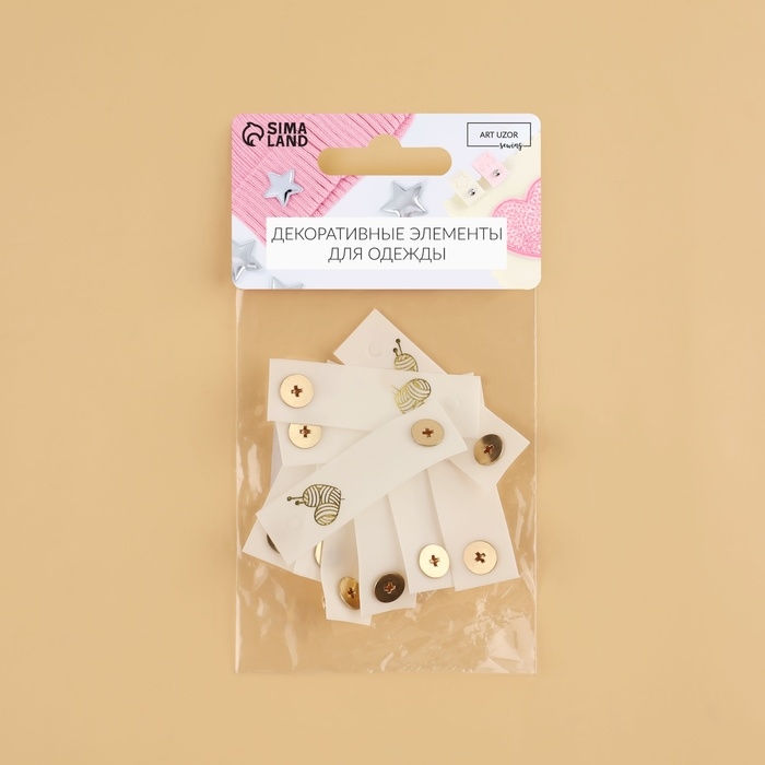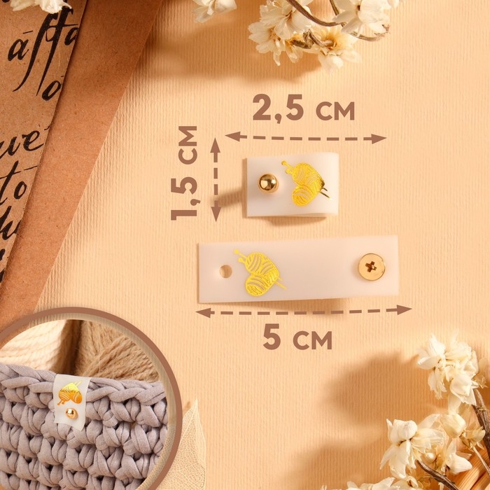 Бирка с кнопкой «Клубок», 5 × 1,5 см, 10 шт, цвет белый/золотой