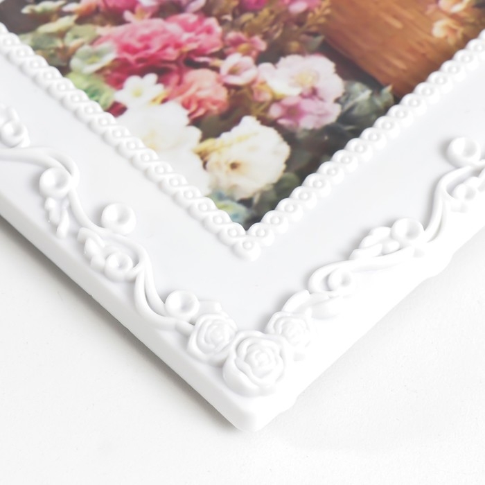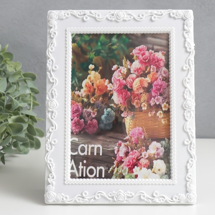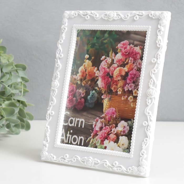 Фоторамка пластик 10х15 см "Растительный узор" белая 17х22 см