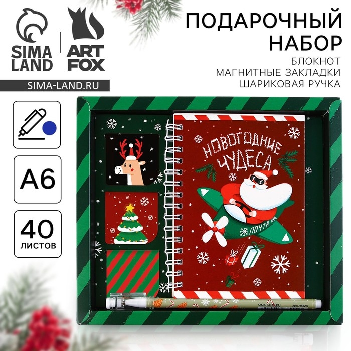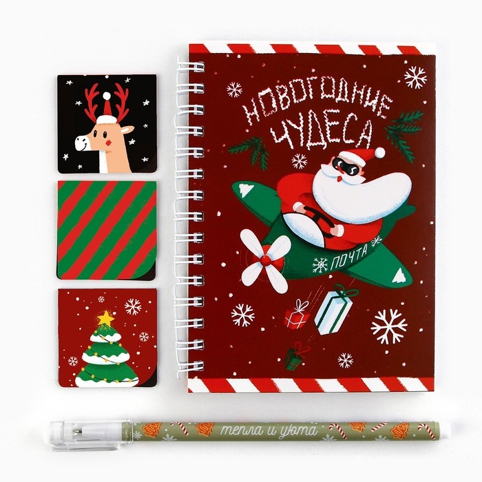 Подарочный набор новогодний «Новогодние чудеса»: блокнот на спирали А6, 40 листов, магнитные закладки 3 шт и ручка пластик