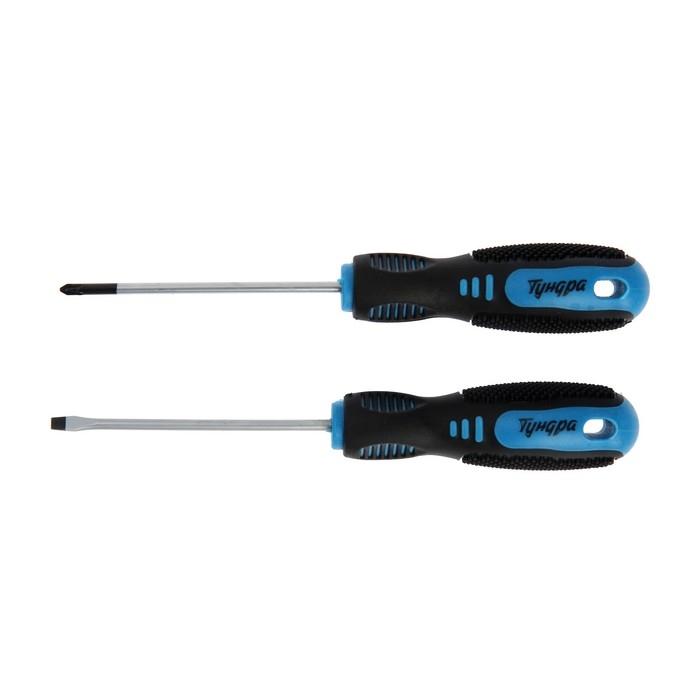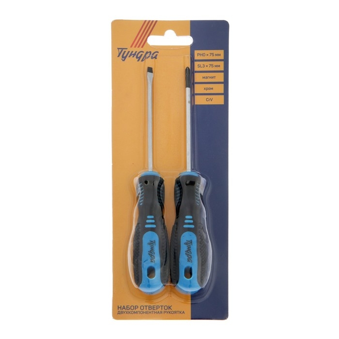 Набор отверток ТУНДРА, CrV, хром, магнит, 2К рукоятки, PH0 и SL3 х 75 мм, 2 шт.