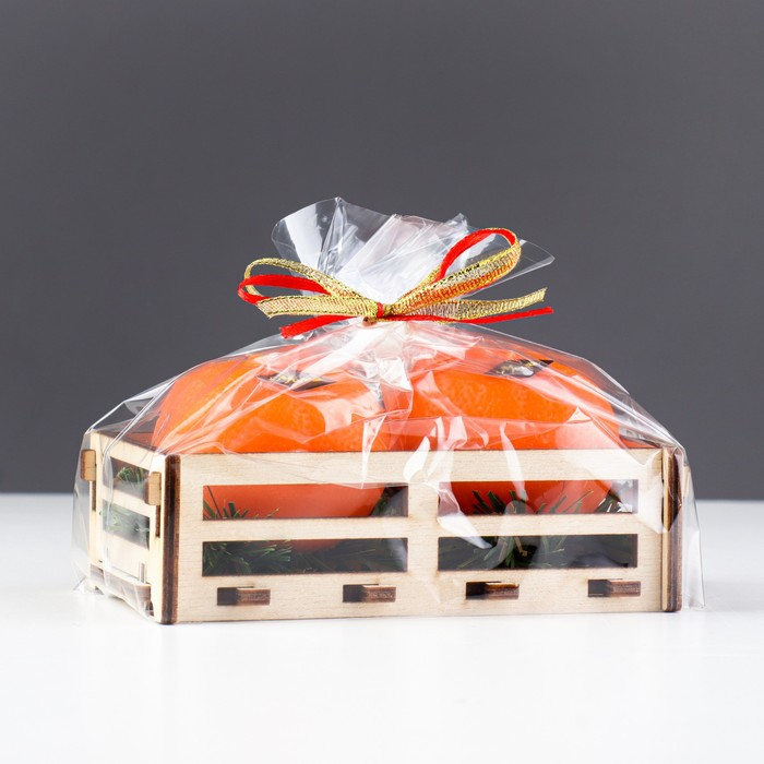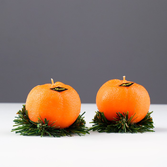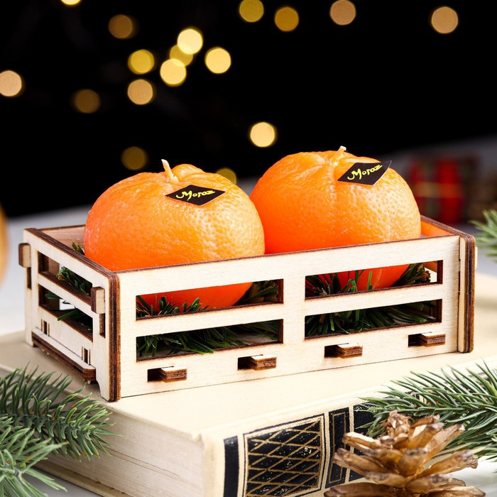 Набор новогодних свечей "Мандарины в ящике", 2 шт, 6,2×14×7,4 см