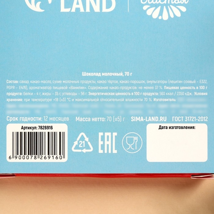 Шоколад молочный «Согревают уютом», 70 г.