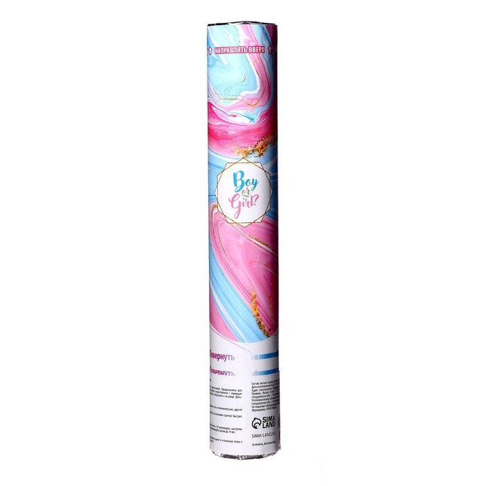 Гендер-пати. Хлопушка пневматическая Boy or Girl, мрамор девочка, 30 см