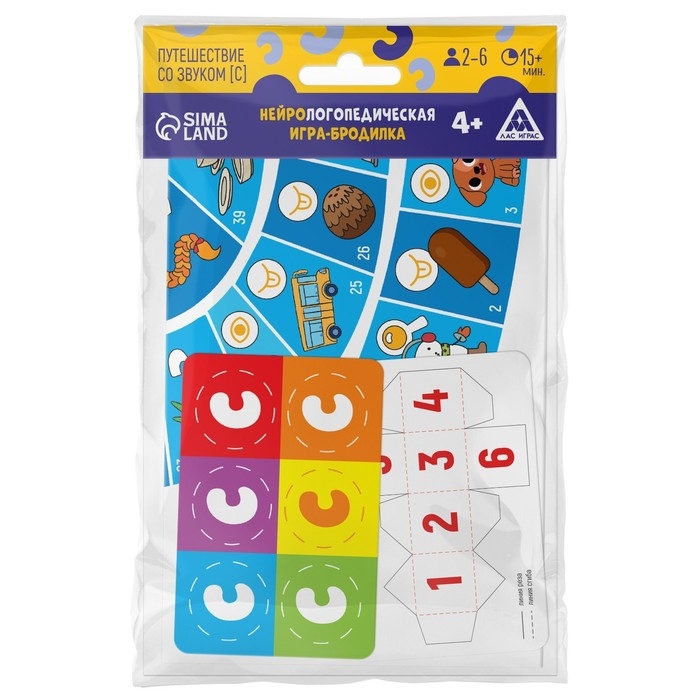 Нейрологопедическая игра-бродилка «Путешествие со звуком [С]», игровое поле, карта с фишками, кубик, 4+