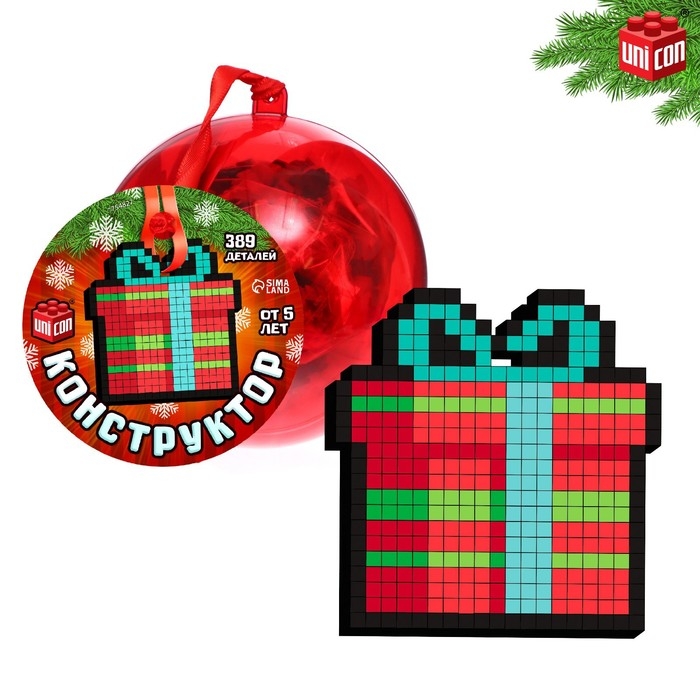 Пиксельный конструктор состоит из множества блоков, которые сцепляются между собой. С этим набором ребёнок соберёт новогоднюю композицию и с пользой проведёт время.