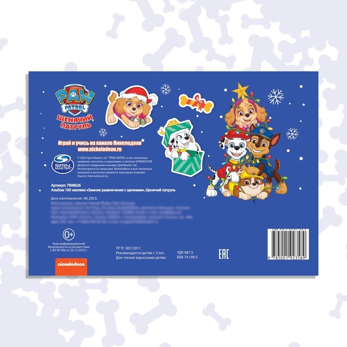Альбом 100 наклеек «Зимние развлечения с щенками», А5, 12 стр., Щенячий патруль