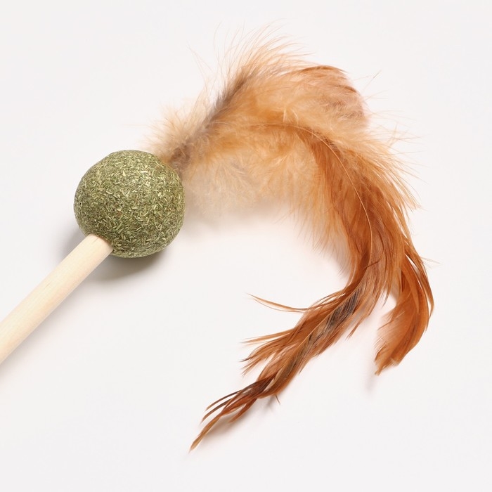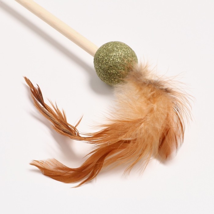 Дразнилка с шариком из кошачьей мяты и перьями, 52 см