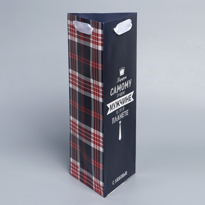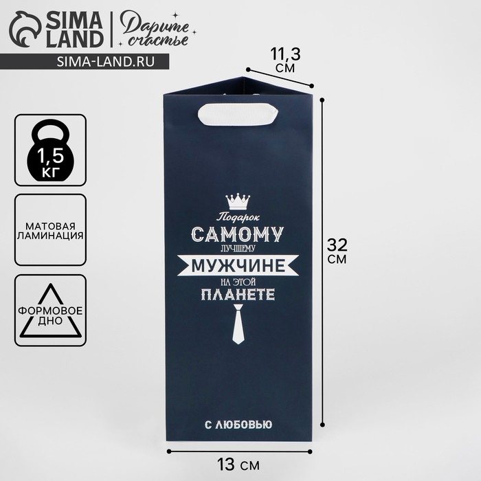 Пакет подарочный под бутылку, упаковка, «Самому лучшему мужчине», 13 х 32 х 11,3 см