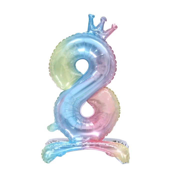 Шар фольгированный 32" «Цифра 8 с короной», градиент, на подставке