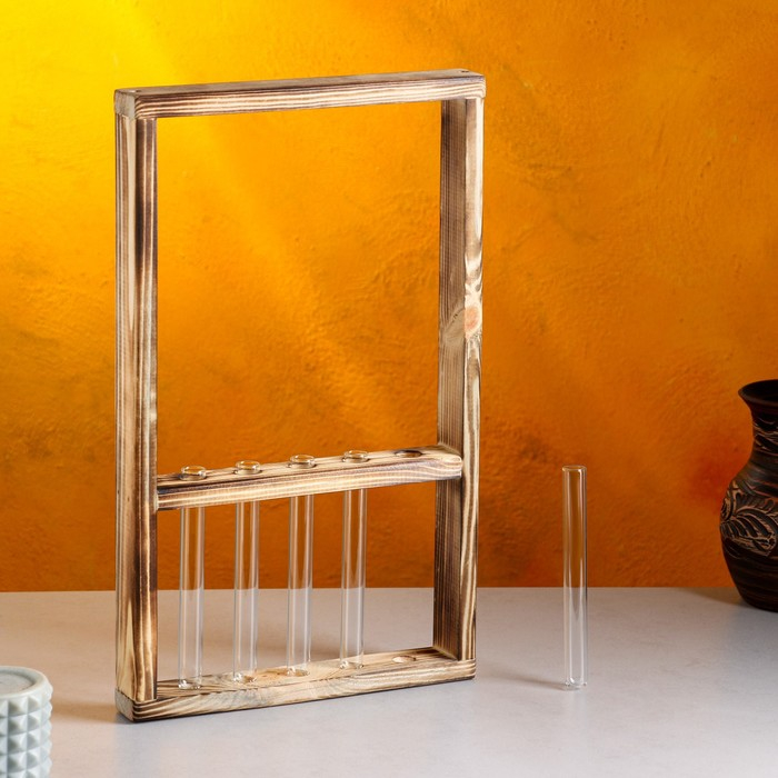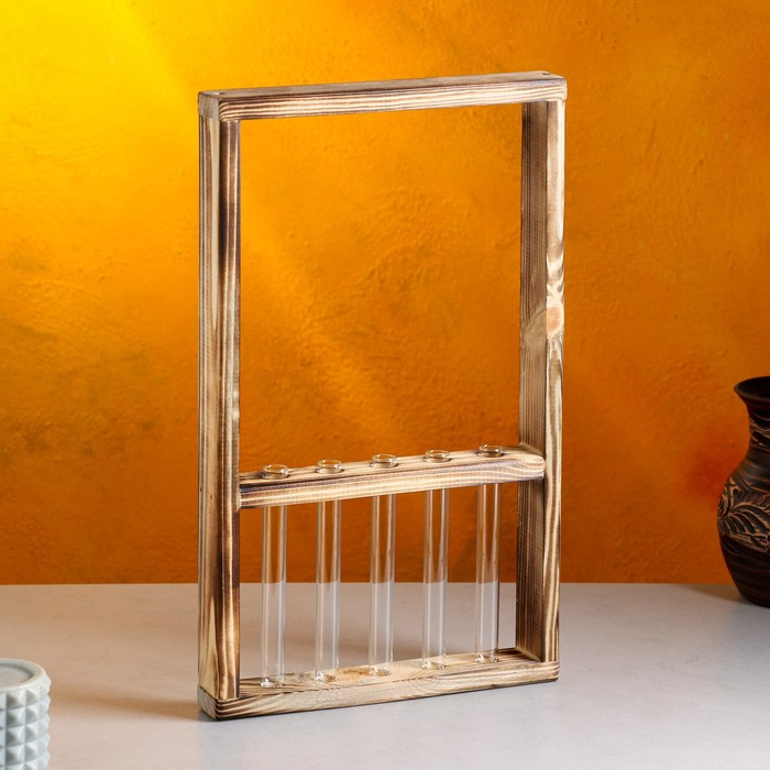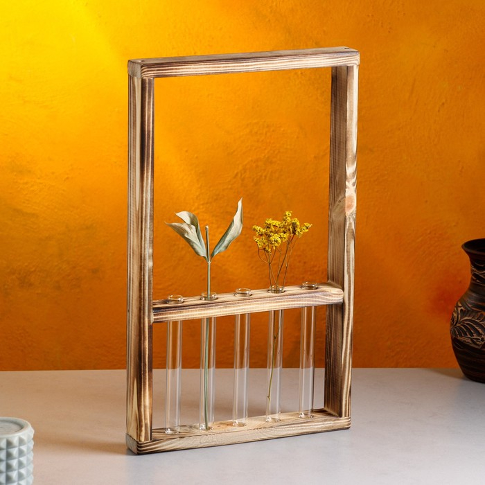 Кашпо деревянное 28×4.5×40 см с 5 колбами "Рамка Экстра", обжиг Дарим Красиво