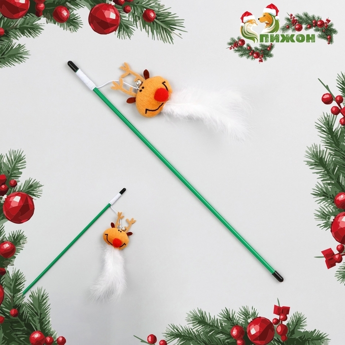Дразнилка-удочка для кошек с бубенчиком "Олень", 40 см