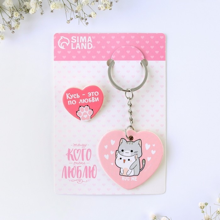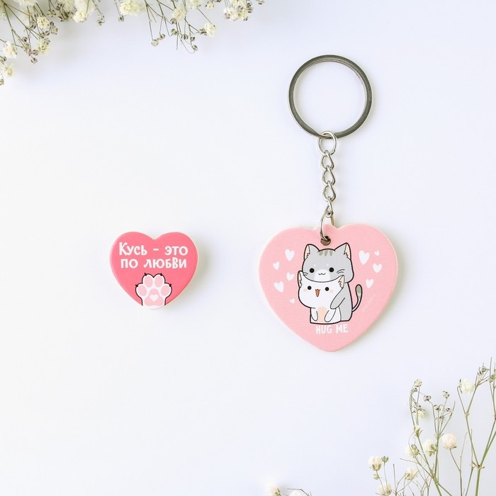 Брелок для ключей, значок, сувенир «Кусь - это по любви», набор, 8,3 х 12 см.