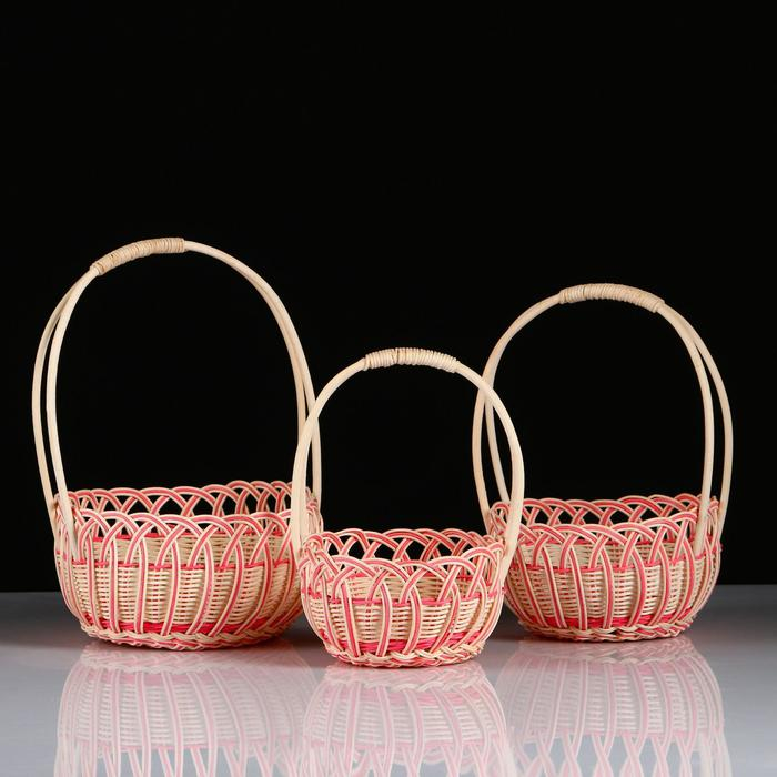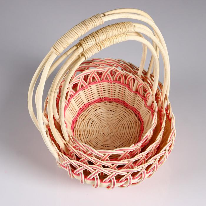 Набор корзин плетёных, розовых, бамбук, 3 шт.