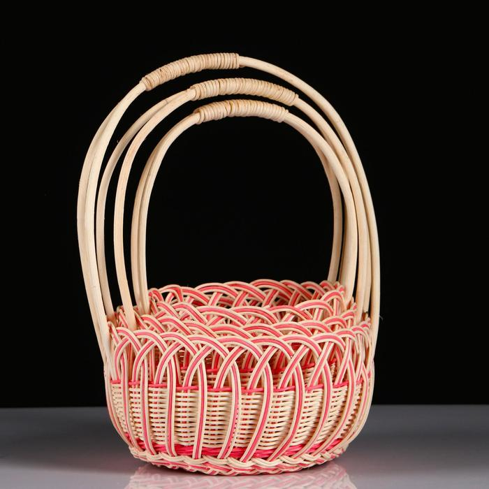 Корзина плетеная бамбук, D13xH9,5/28см, светло-розовая