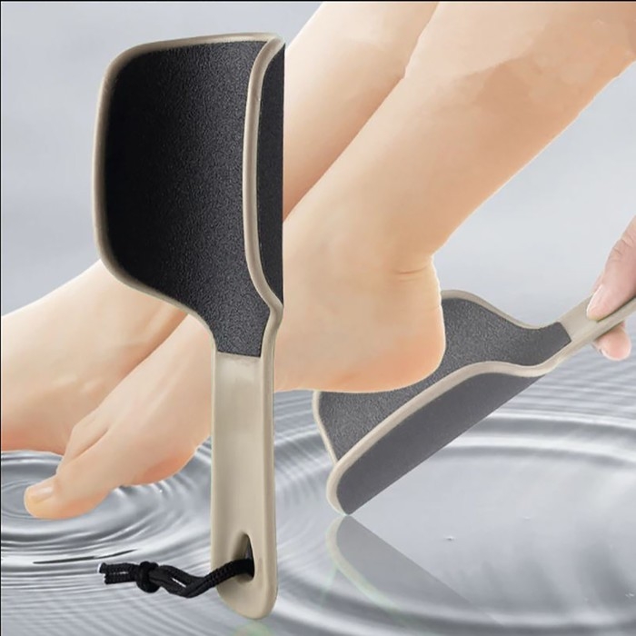 Двухсторонняя тёрка-наждак бережно очистит огрубевшую кожу ног от мозолей и натоптышей. Пяточки примут здоровый и ухоженный вид. На одной стороне изделия расположена тёрка, она поможет удалить огрубевшую кожу. На другой — наждак, который позволит придать пяткам мягкость и обработать сухие мозоли. Благодаря анатомической форме пилки можно обработать пятки и края стоп со всех сторон.