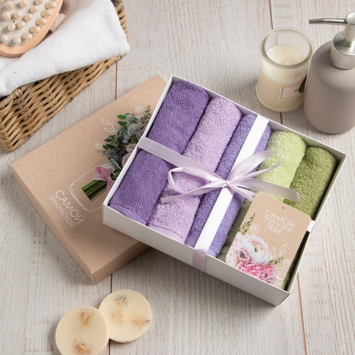Набор махровых салфеток "Самой прекрасной" 30х30 см -5шт, 100% хл, 340гр/м2