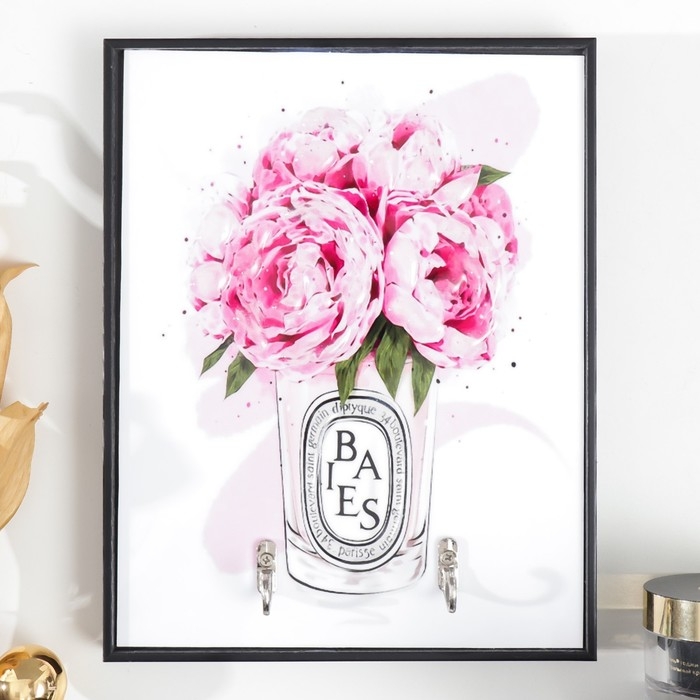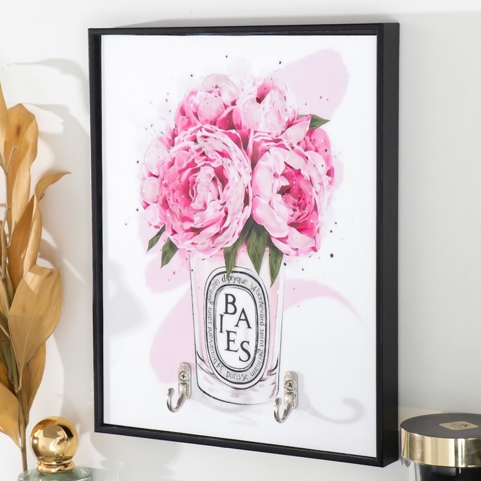 Крючки декоративные 2 крючка "Розовые пионы в стакане" 19х24 см