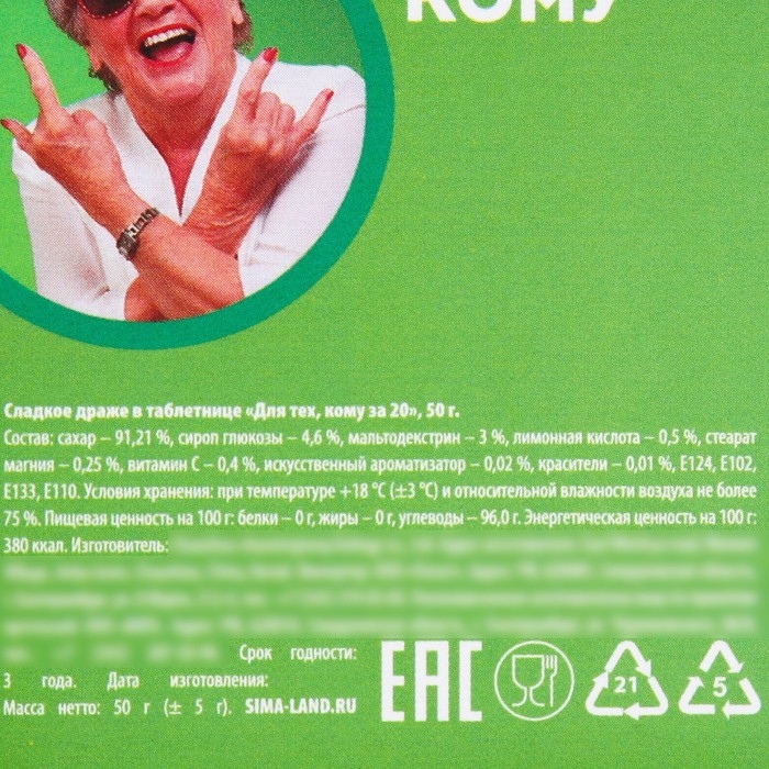 Драже Конфеты в таблетнице «Для тех, кому за 20», 50 г.
