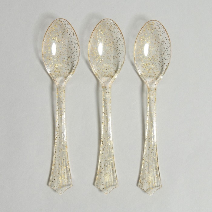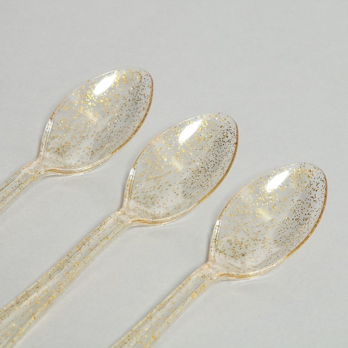 Ложки пластиковые «Блеск», в наборе 12 штук, цвет золото