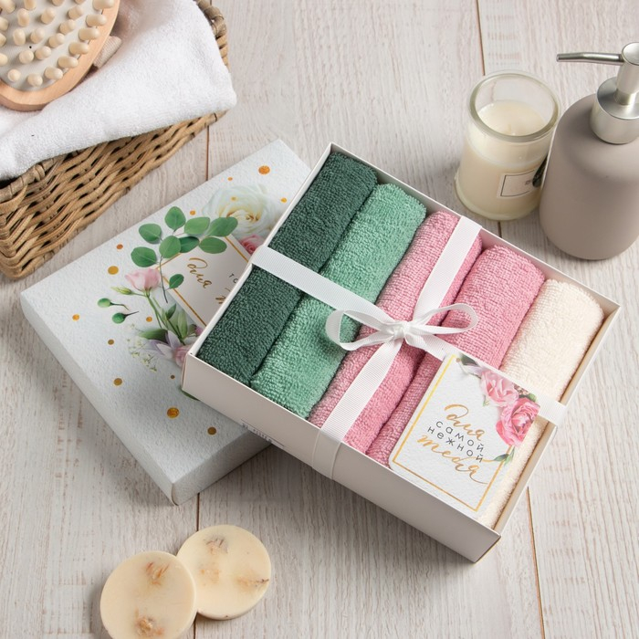 Набор махровых салфеток «Только для тебя» 30х30 см -5шт, 100% хл, 340гр/м2