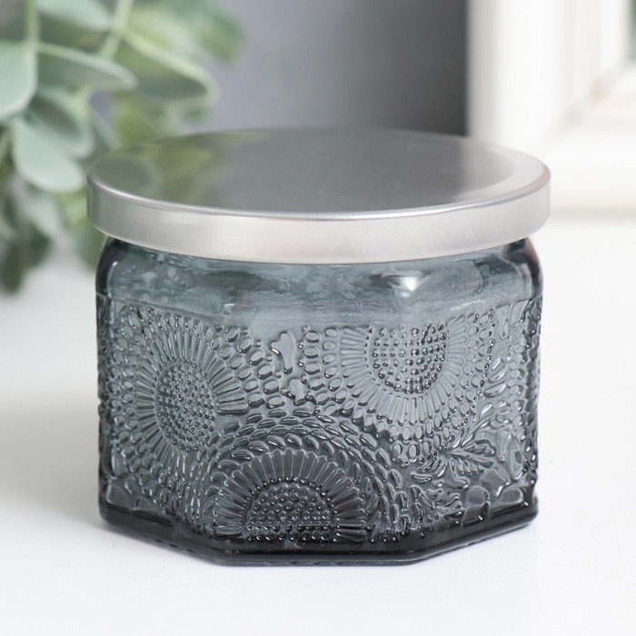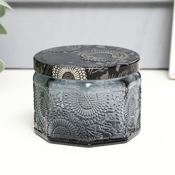 Банка для свечей стекло с крышкой "Цветочная" серая, многогранник 5х7х7 см, МИКС