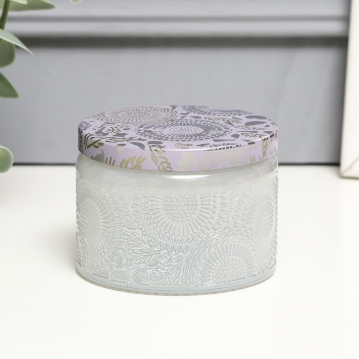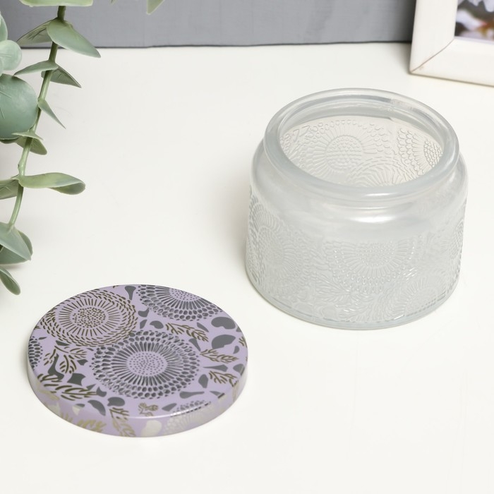 Банка для свечей стекло с крышкой "Цветочная" белая, круглая МИКС 5х7х7 см