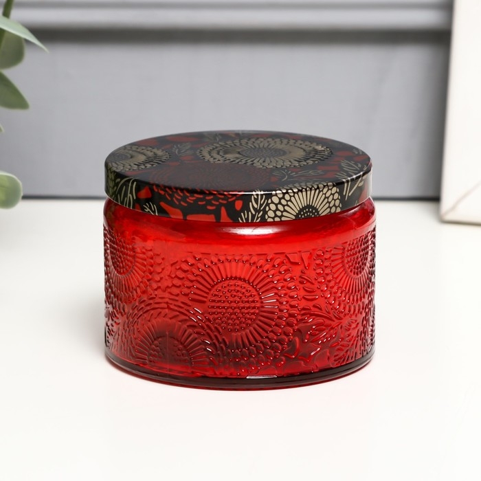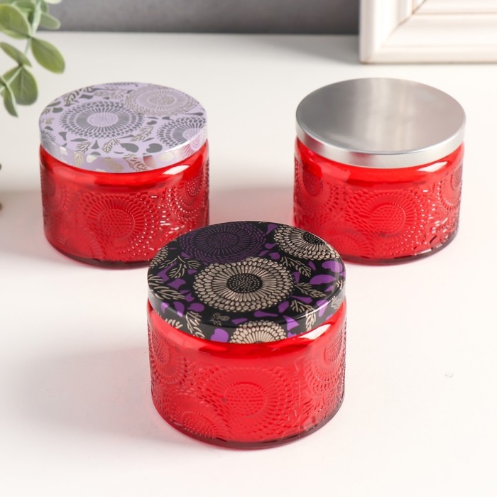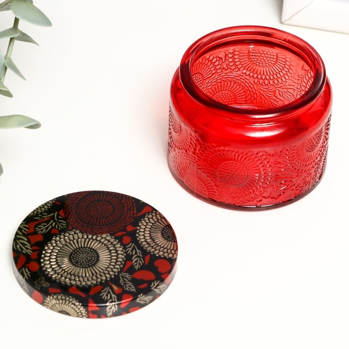 Банка для свечей стекло с крышкой "Цветочная" красная, круглая 5х7х7 см, МИКС