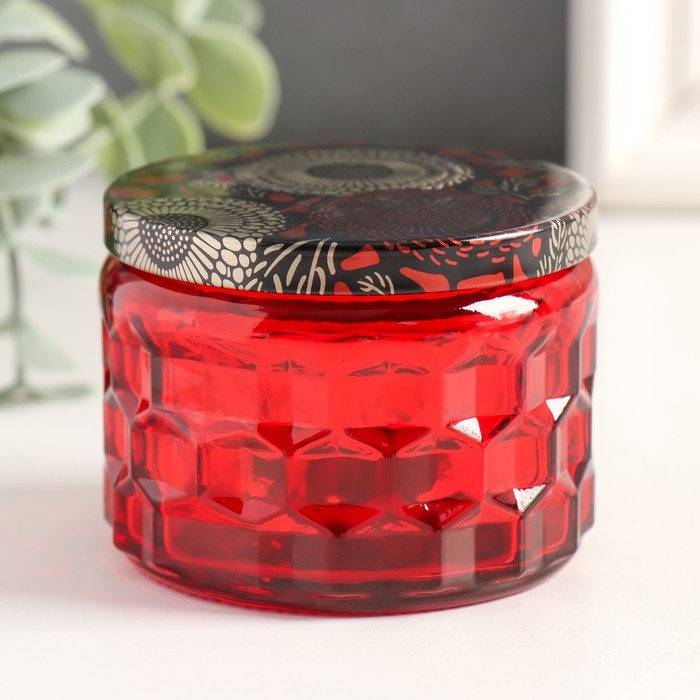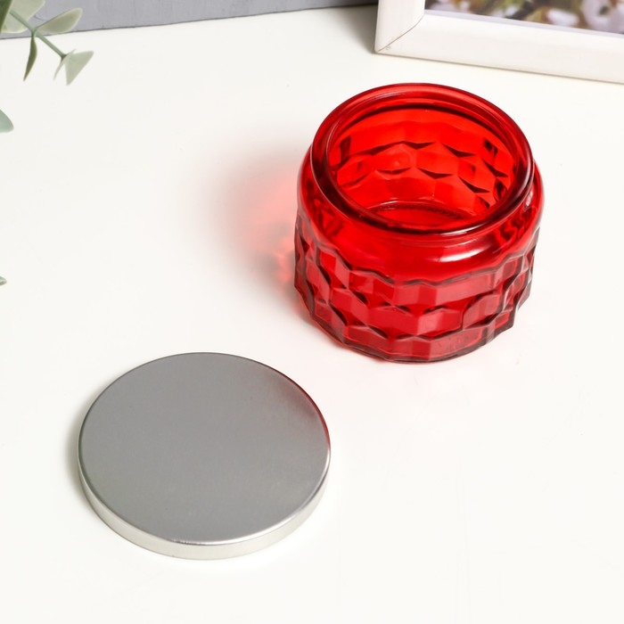 Банка для свечей стекло с крышкой "Соты" красная 5х7х7 см, МИКС
