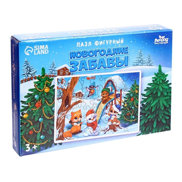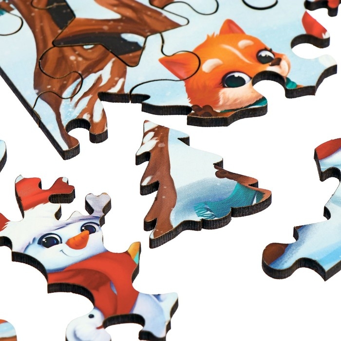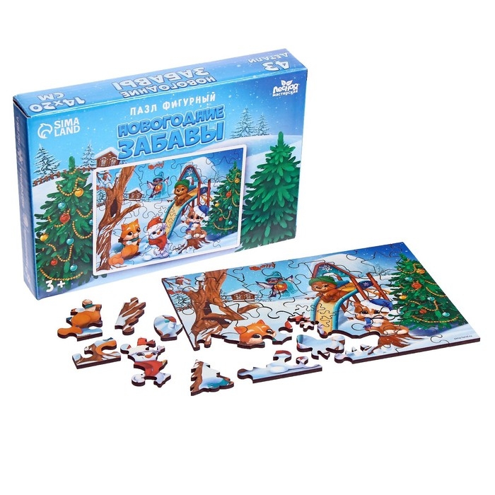 Деревянный пазл фигурный «Новый год! Новогодние забавы»