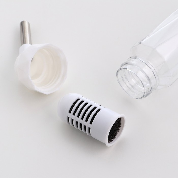 Поилка с дозатором предотвращает вытекание воды, поэтому в клетке всегда будет сухо, так же имеется фильтр для отчистки воды.