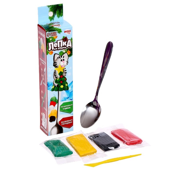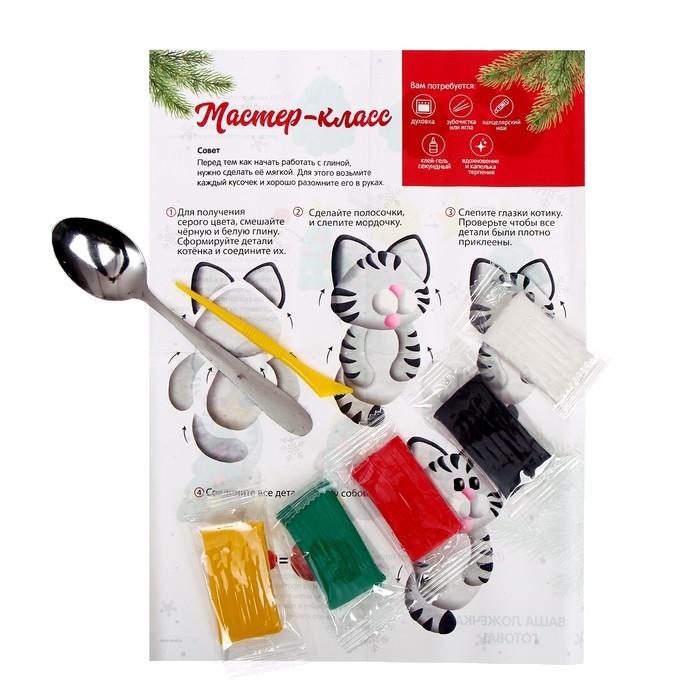 Лепка на ложке «Новый год! Котик на ёлке», новогодний набор для творчества