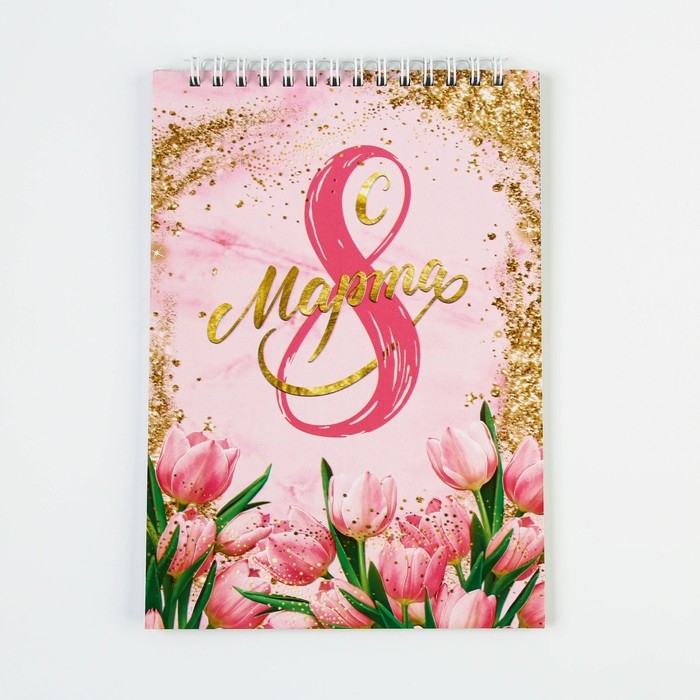 Блокнот «С 8 марта золото тюльпаны», на гребне, А5, 40 листов