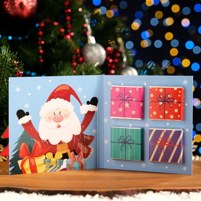 Шоколадная открытка – необычный и оригинальный способ поздравить с Новым годом! В ассортименте представлены интересные, забавные пожелания на любой вкус. Внутри каждой открытки вы найдёте маленькую шоколадку из настоящего шоколада высокого качества от российских и бельгийских производителей. Благодаря качественному составу, ваш сюрприз будет не только красивым, но и действительно вкусным!