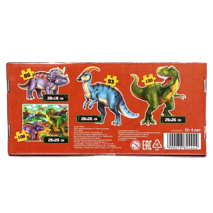 Набор с фигурными пазлами 4 в 1 «Планета динозавров»