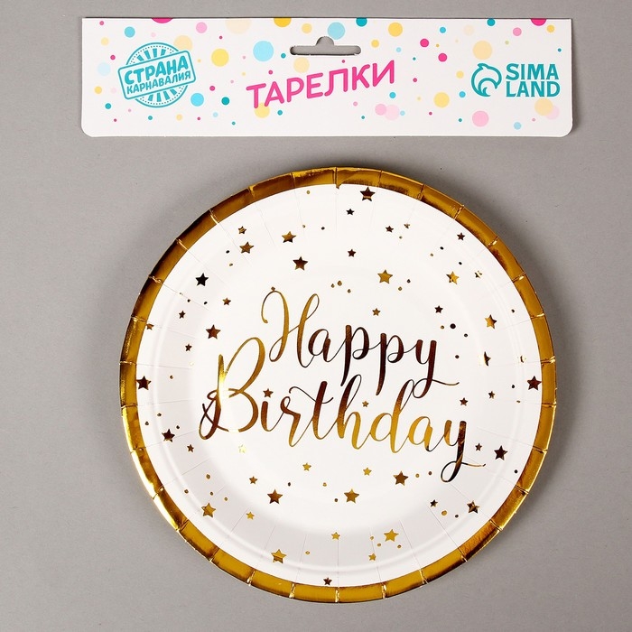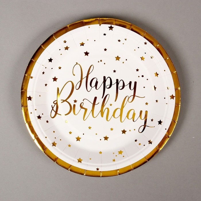 Тарелка одноразовая бумажная «Happy birthday», набор 6 шт., 18 см