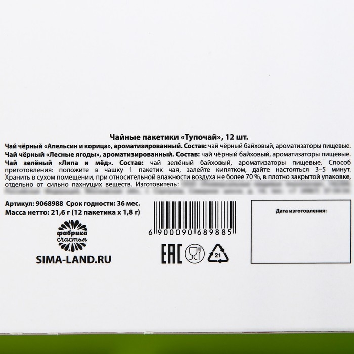 Чайные пакетики «Тупочай», 12 шт. х 1,8 г.